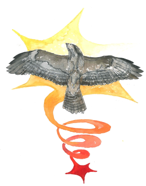 Mie vain kaartelen ja kattelen. Lämmennyt ilma nousee mukavasti Vuomapään ja Vongoivan juurilta tänne ylös. Oikein viimeisen päälle kun siivet levitän, niin ympyrää pyörimällä pääsisin vaikka pilviin. Alhaalla tunturin rinteessä näyttää iso porotokka kaivelevan jäkälää. Porot vähän pelkää minua, mutta pelätköön. En mie niitä nyt kiusaa, mie vain kattelen. Vasoja oikeastaan. Heikkoja vasoja, jos oikein tarkkoja ollaan.